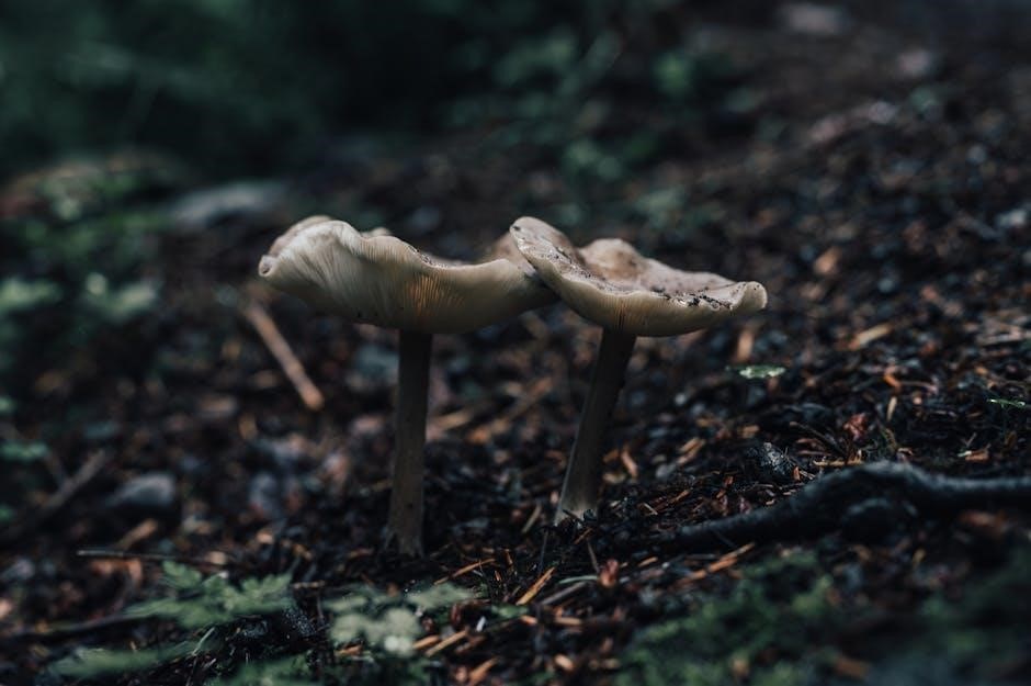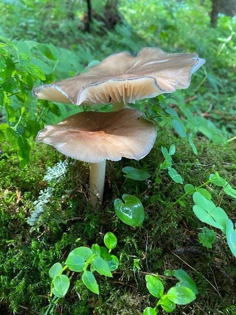 Additionally, “Mushrooms of the Pacific Northwest Foraging Guide” by Steve Russell and Teresa Marrone offers a 5-step identification process, focusing on harvesting and preparing edible species found in Washington, Oregon, and British Columbia.